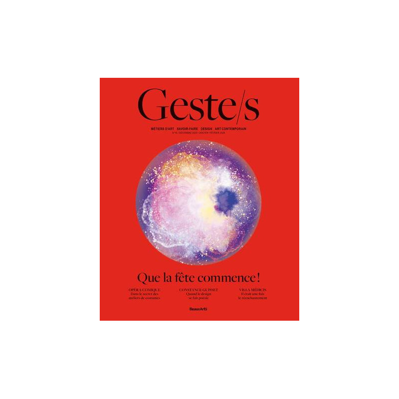 GESTE/S invite donc LA FÊTE au cœur de sa nouvelle Théma. À la recherche de ses matières, ses ors, ses perles, et bien d’autres encore qui, sublimées, s’en font le symbole. À la rencontre de ces créateurs qui, du festif, ont su faire un style. Dans le secret de ces lieux d’excellence qui, de surprise en inattendu, incarnent, inspirent, inventent ce fameux sens de la fête. Geste/s à la (re)découverte des artisans, designers du bonheur, de la joie et du plaisir. …