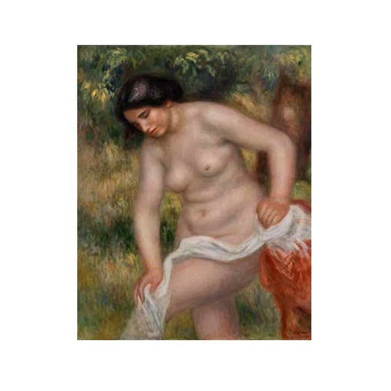 Auguste Renoir (1841-1919) est l'auteur de plus de 4000 oeuvres conservées dans les plus grands musées du monde. Impressionniste de la première heure, il mène une carrière de soixante années ininterrompues qui le conduit à définir une palette toute peronnelle où l'appel irrésistible des couleurs, l'approche sensuelle et intime touchent immédiatement le spectateur : des types simples, modèles d'atelier ou bourgeois, des scènes du quotidien aux atmosphères joyeuses, d'opulents nus.