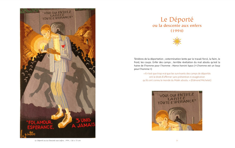 Cet ouvrage met en lumière un cycle important dans l’histoire de la tapisserie du XXe siècle, l'œuvre de l'artiste dessinateur, Maurice de la Pintière (1920- 2006) est incarcéré aux camps de Dora, puis Dachau et Bergen-Belsen pour ses activités de résistant. Un témoignage de l’humanisme chrétien.