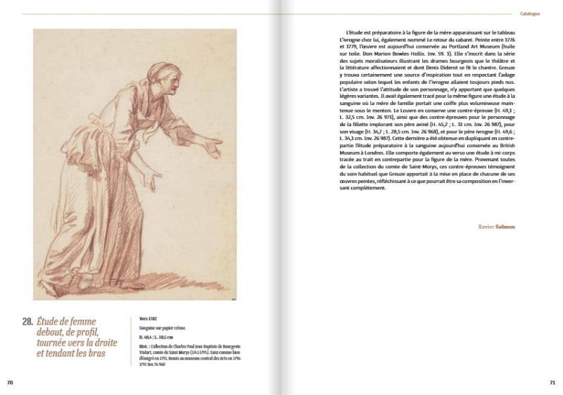 Sélectionnées parmi la riche collection du Cabinet des dessins, trente feuilles de Jean-Baptiste Greuze témoignent à la fois de son processus créatif et de sa volonté de faire de certains de ses dessins les plus aboutis des œuvres à part entière destinées à une clientèle d’amateurs et de collectionneurs.